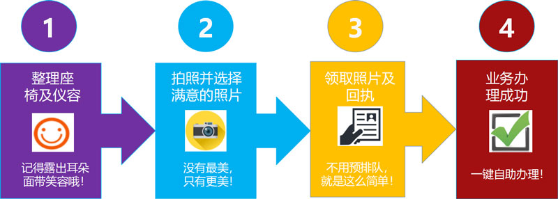 3、根據(jù)語音提示進行拍照“四步走”,全自助化辦理。