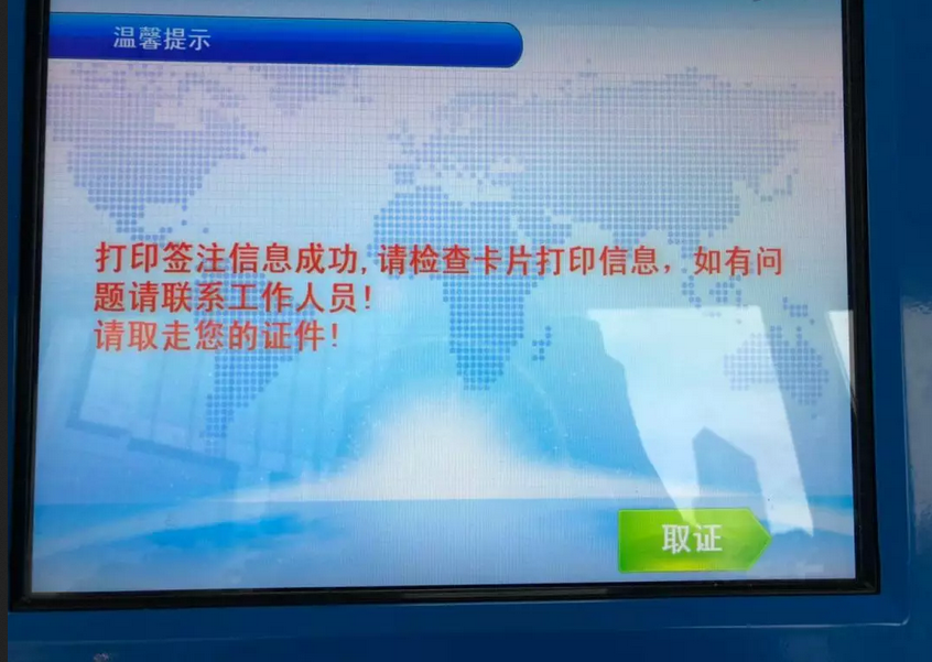 辦證點(diǎn)有兩臺(tái)出入境自助辦證機(jī)按照提示將簽注卡插入簽注機(jī)如果反過來了就會(huì)提示錯(cuò)所以要按照正確的方向插入卡