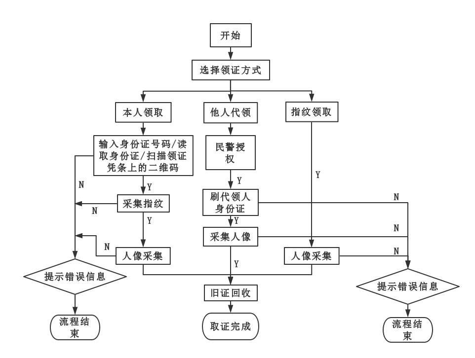 自助領(lǐng)證子系統(tǒng)申領(lǐng)人通過(guò)輸入身份證號(hào)碼并按捺已登記的手指指紋,系統(tǒng)自動(dòng)核實(shí)信息并查找相應(yīng)的身份證件,自動(dòng)將證件送出,完成自助領(lǐng)證。