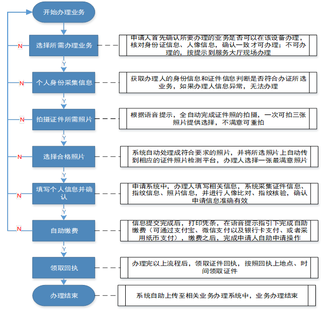身份證拍照申請一體機集證件照自助拍照機和身份證自助申請機功能于一身,本終端設備可用于多種證件照片的拍攝采集,用于戶籍辦理、身份證申領業(yè)務,具有高效率、高度智能化的特點。群眾可以自行操作拍攝出自己滿意的證件照片并打印或上傳至相關系統(tǒng)照片庫,拍照結束后,系統(tǒng)將直接通過與照片庫的對接,完成照片的自動獲取,通過人像比對、指紋核驗、信息核對,確保辦證人信息準確一致后,再進行預約、申請等一系列自助功能來辦理申領手續(xù),省去了群眾拍攝照片后需要排隊換用申領機,并重新輸入身份信息的步驟,完成申請后,系統(tǒng)自動打印申請表和辦理回執(zhí)并向申請人發(fā)送辦理通知短信。