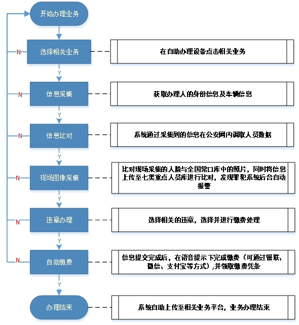 交警違章自助處理繳費機辦理流程,將各種情況問題考慮,通過自助設備,直接完成扣2分以下(可設定)的違章全部處理過程。