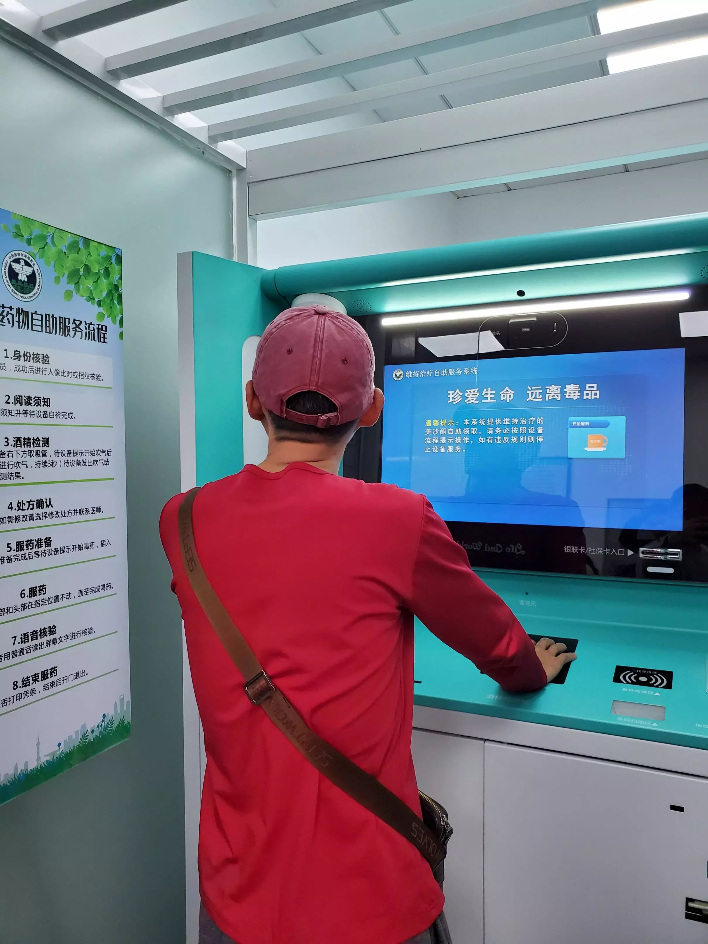 改造后的自助服務站在智能化技術幫助下變得便利。戒毒康復人員只需在自助服務站門口通過刷身份證等方式,經(jīng)智能系統(tǒng)確認身份后就入站;自助終端設備間會再次進行身份識別,以確定戒毒康復人員身份,準確配藥。