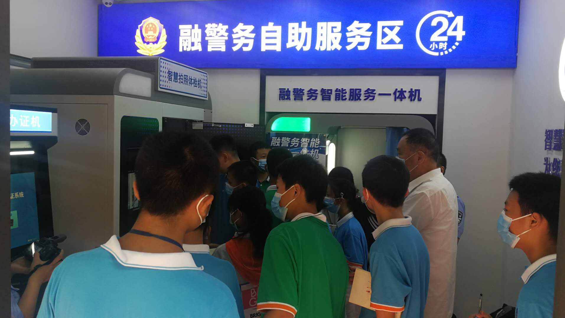同時(shí)也和同學(xué)們一起體驗(yàn)了融警務(wù)自助服務(wù)區(qū)的智慧拍照體檢機(jī)、身份證拍照申請(qǐng)一體機(jī)等相關(guān)功能。邱娥國(guó)同志對(duì)融警務(wù)自助服務(wù)區(qū)借助科信技術(shù),實(shí)現(xiàn)警務(wù)融合,多警種業(yè)務(wù)“一門(mén)通辦”給與了高度認(rèn)可。