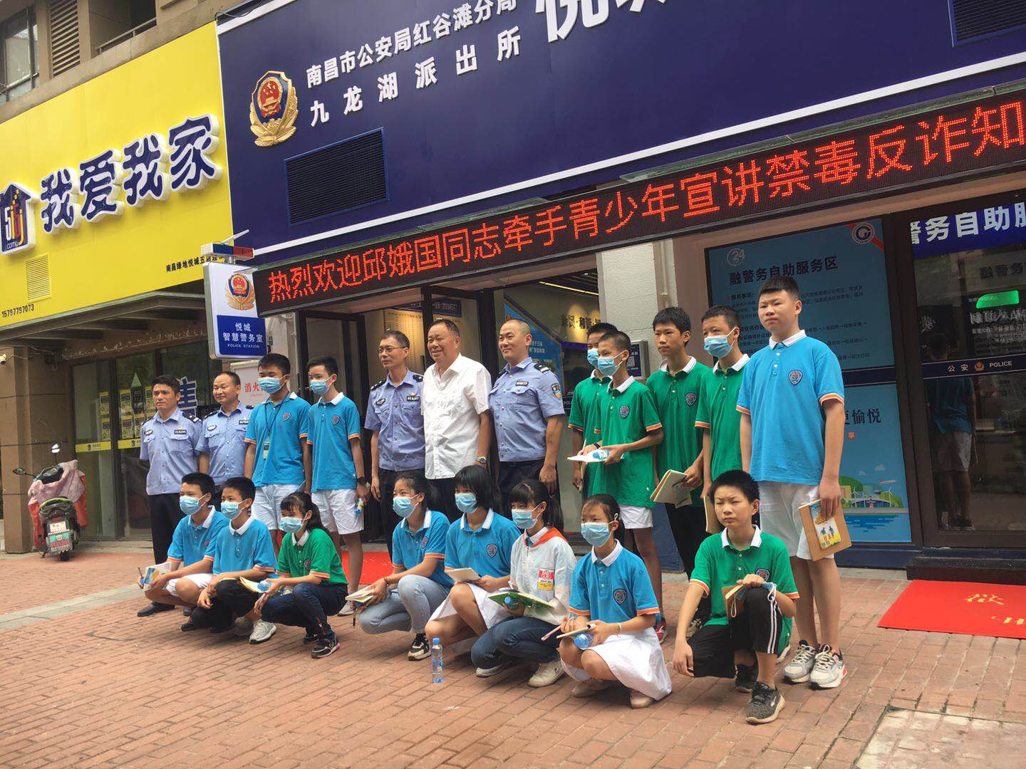 為進(jìn)一步加強(qiáng)校園禁毒及防詐騙宣傳教育力度,有效增強(qiáng)青少年學(xué)生抵制毒品和防詐騙的意識(shí)和能力,6月29日上午,邱娥國(guó)同志牽手南昌市青少年在南昌市九龍派出所宣講禁毒反詐騙知識(shí),同時(shí)一起參觀了解融警務(wù)自助服務(wù)區(qū)。九龍派出所所長(zhǎng)涂杰波、九龍派出所教導(dǎo)員萬(wàn)國(guó)紅及當(dāng)?shù)孛窬阃?/span>