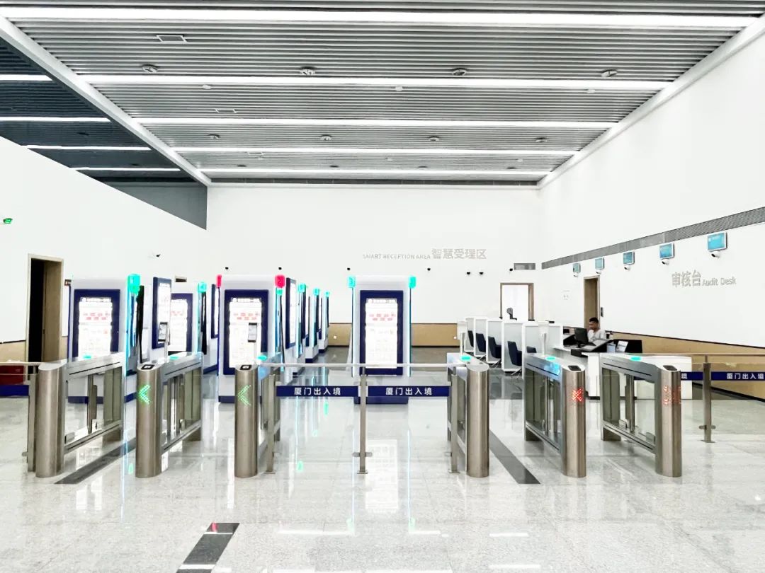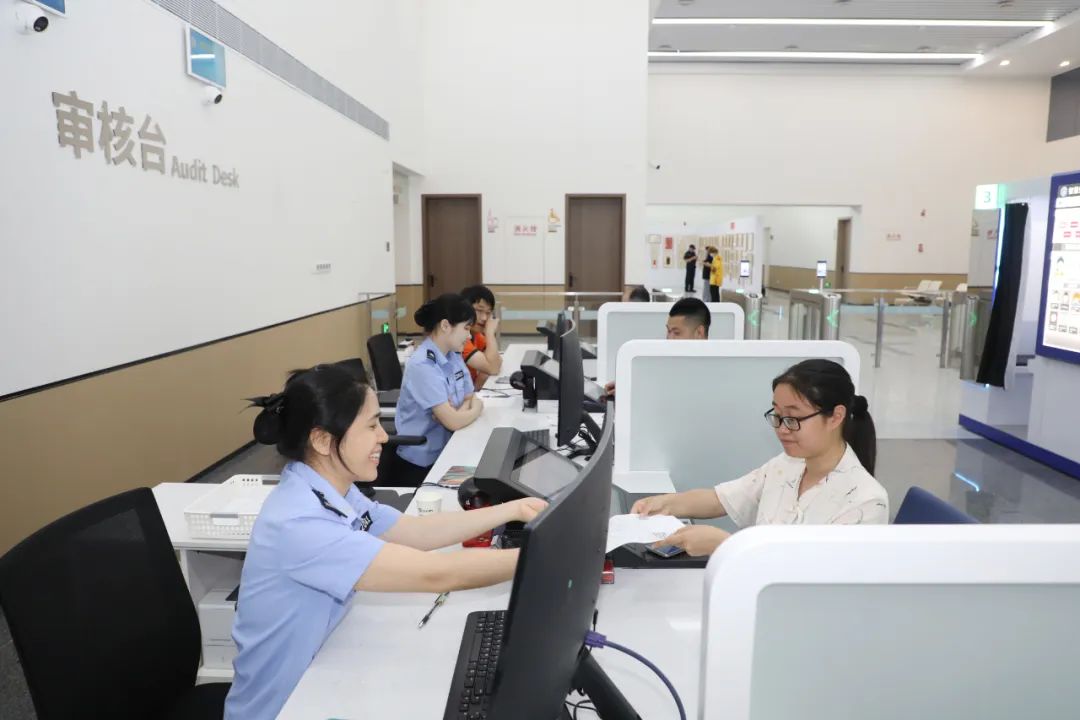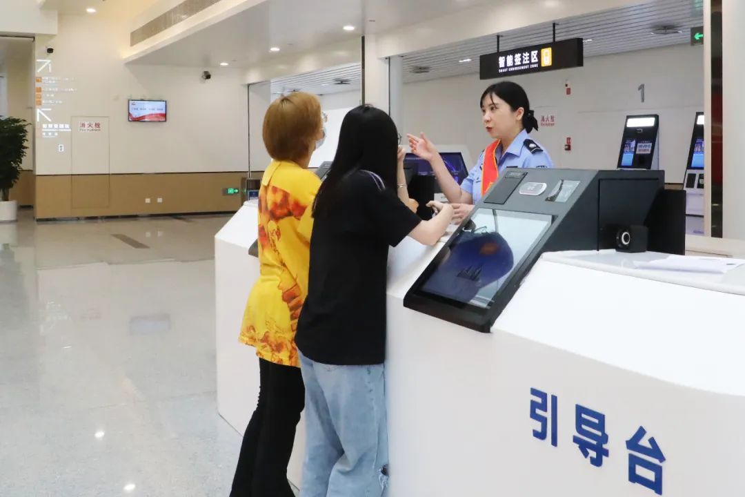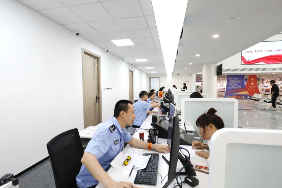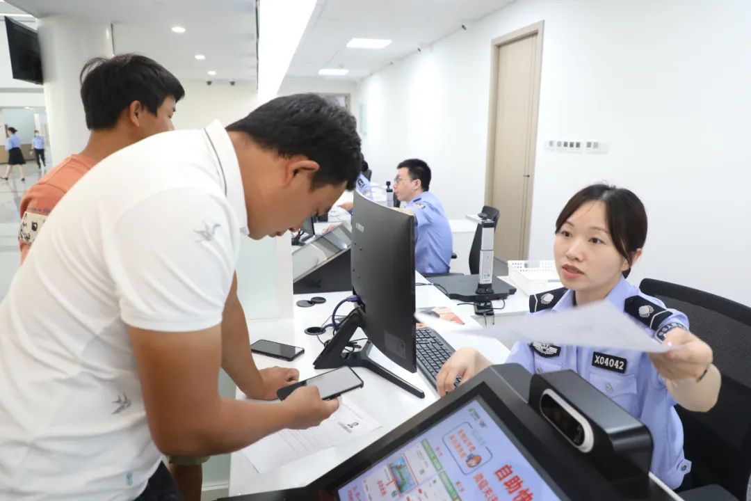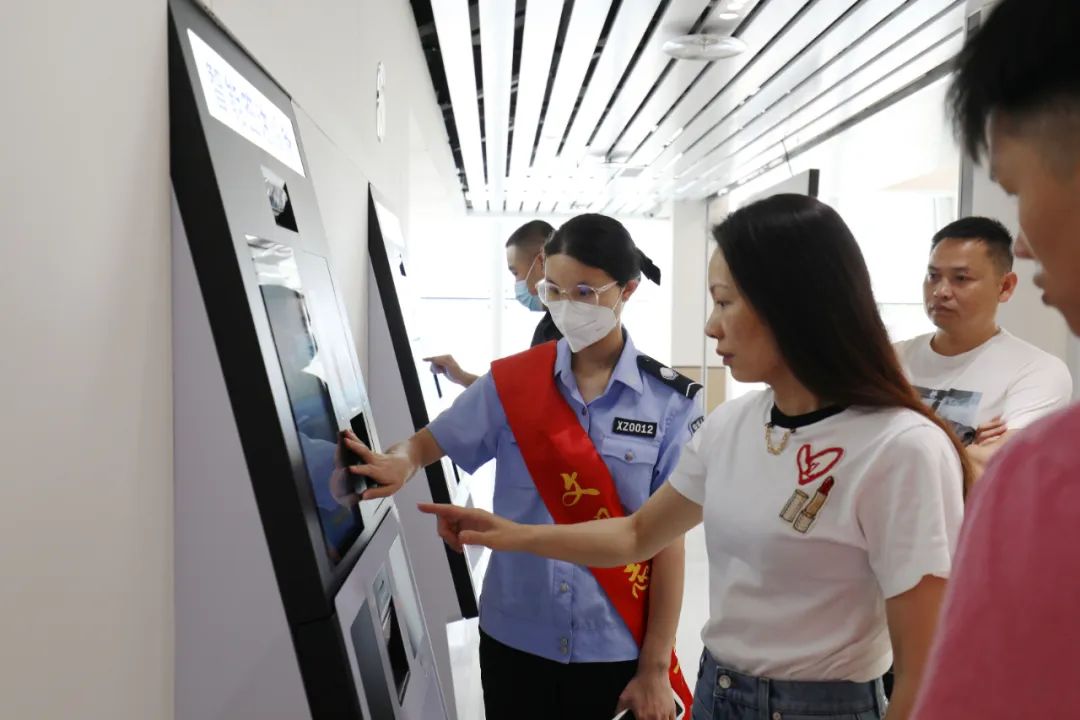 ▲智慧受理區(qū),通過網上預受理的申請人可在此實現一站式完成自助填表、自助拍照、指紋采集等所有流程,經民警核驗校對后即可自助繳費辦理快遞,最大限度提升了辦證效率。