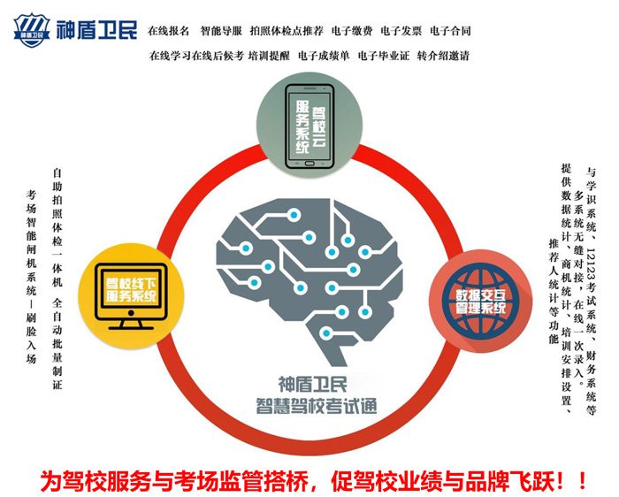 目前,駕培行業(yè)競(jìng)爭(zhēng)非常激烈,品牌、價(jià)格、監(jiān)管、服務(wù)和地理位置直接影響駕校收益。這些問(wèn)題大部分駕校都會(huì)遇到,越來(lái)越制約駕校的發(fā)展。只有不斷的提高學(xué)員的服務(wù)體驗(yàn),降低運(yùn)營(yíng)成本,提高監(jiān)管降低風(fēng)險(xiǎn)?! ∧敲慈绾卧趺唇鉀Q以上的問(wèn)題呢?根據(jù)我們長(zhǎng)期對(duì)駕校行業(yè)的了解和我們合作客戶的的運(yùn)用反饋。神盾衛(wèi)民智慧駕??荚囃梢院芎玫慕鉀Q以上的問(wèn)題?! 〉谝唬焊咝?。報(bào)名效率提速至“火箭”級(jí)別! 無(wú)須往返照相館拍照和醫(yī)院進(jìn)行體檢,信息.