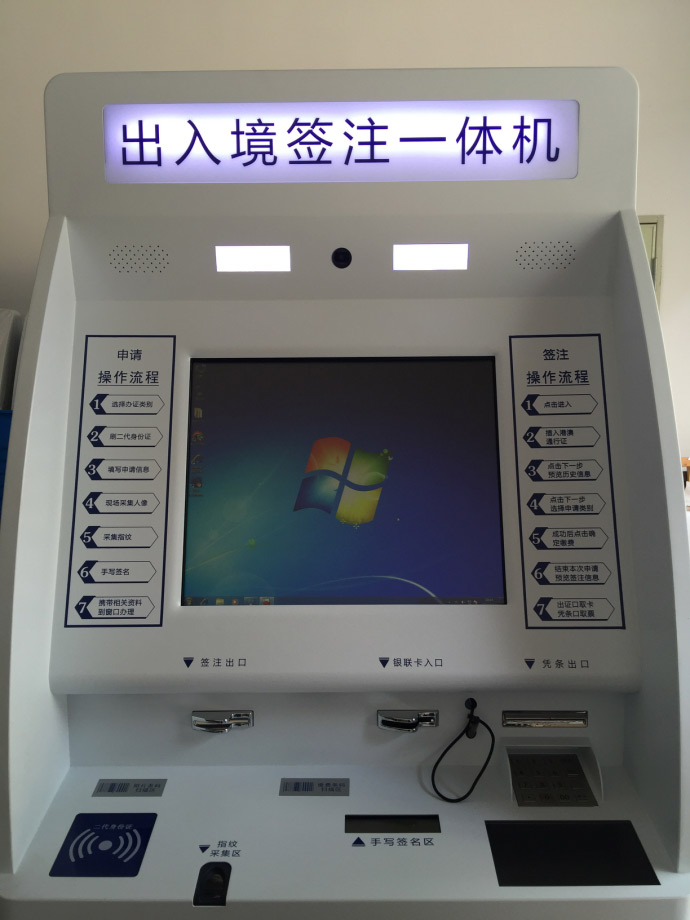 最近大學(xué)城警務(wù)站入手了兩臺(tái)新機(jī)器,分別是“身份證拍照申請(qǐng)一體機(jī)”以及它的小伙伴“身份證自助領(lǐng)證機(jī)”,話不多說(shuō),上圖:1、功能介紹 身份證過(guò)期或丟失可在身份證拍照申請(qǐng)一體機(jī)上自助辦理,辦理流程如下:刷舊身份證(如身份證丟失,可以直接輸身份證號(hào),但丟失的身份證必須在當(dāng)初辦理時(shí)采集過(guò)指紋)進(jìn)入申請(qǐng)辦理系統(tǒng),根據(jù)系統(tǒng)提示拍攝身份證證件照(可多次拍攝自行選擇滿意的照片),根據(jù)系統(tǒng)提示采集指紋,繳納身份證辦理費(fèi)用20.